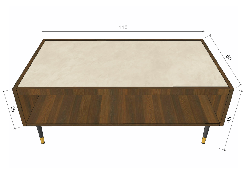 Płyta meblowa wykorzystana do stworzenia tego modelu pochodzi z kolekcji Forrest od Forner – to materiał nie tylko trwały i efektowny wizualnie, ale również w 100% wykonany z drewna z recyklingu, co czyni stolik wyborem przyjaznym środowisku.