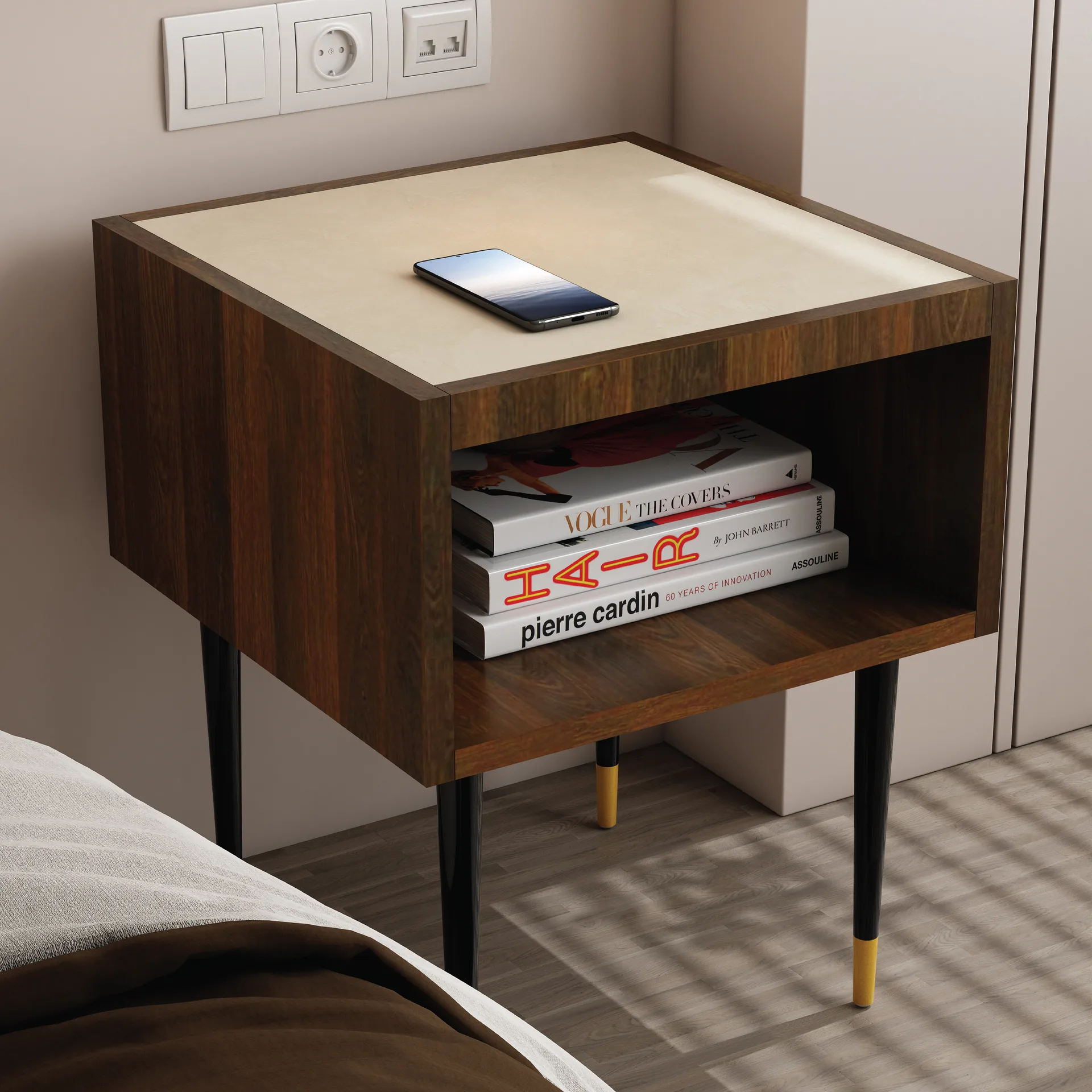 Stolik nocny FORREST to kompaktowy, ale wyjątkowo stylowy mebel, który łączy w sobie funkcjonalność i nowoczesną estetykę. Zaprojektowany z myślą o współczesnych wnętrzach, idealnie odnajduje się nie tylko przy łóżku, ale również jako stolik pomocniczy w salonie – ustawiony obok sofy, fotela czy ulubionego miejsca do czytania.